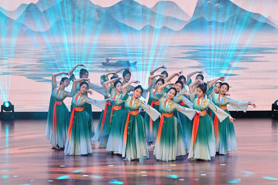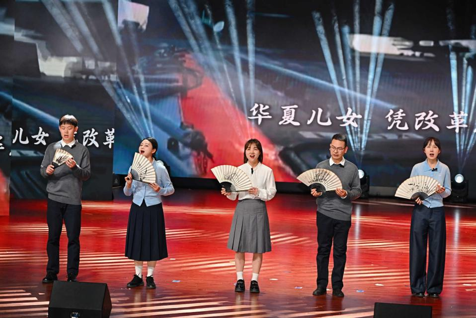 第二会?。ù缶绯。┑?/span>19个节目分为“万物生”“繁花漫”两个篇章,涵盖演唱、器乐演奏、情景剧、小品、舞蹈、朗诵等多种艺术形式。“万物生”篇章以别具一格的《古韵新裁 非遗霓裳》服装秀开场?!栋倌辍贰堵臁贰陡咂分噬钍亲蠲赖母琛贰剁鄱盟δ母鐾啊返?/span>精彩节目,用歌曲、小品、器乐演奏等形式,展现出生命的蓬勃力量。“繁花漫”篇章中,《城市英雄》《走近最可爱的人——李蕤赴朝家书日记》等节目,借助歌舞、朗诵、金钱板等艺术形式,描绘出美好生活的绚丽多彩。晚会在市社科联机关青年理论学习小组激情洋溢的情景朗诵《青春礼赞改革路·奋楫笃行新征程》中圆满落下帷幕。