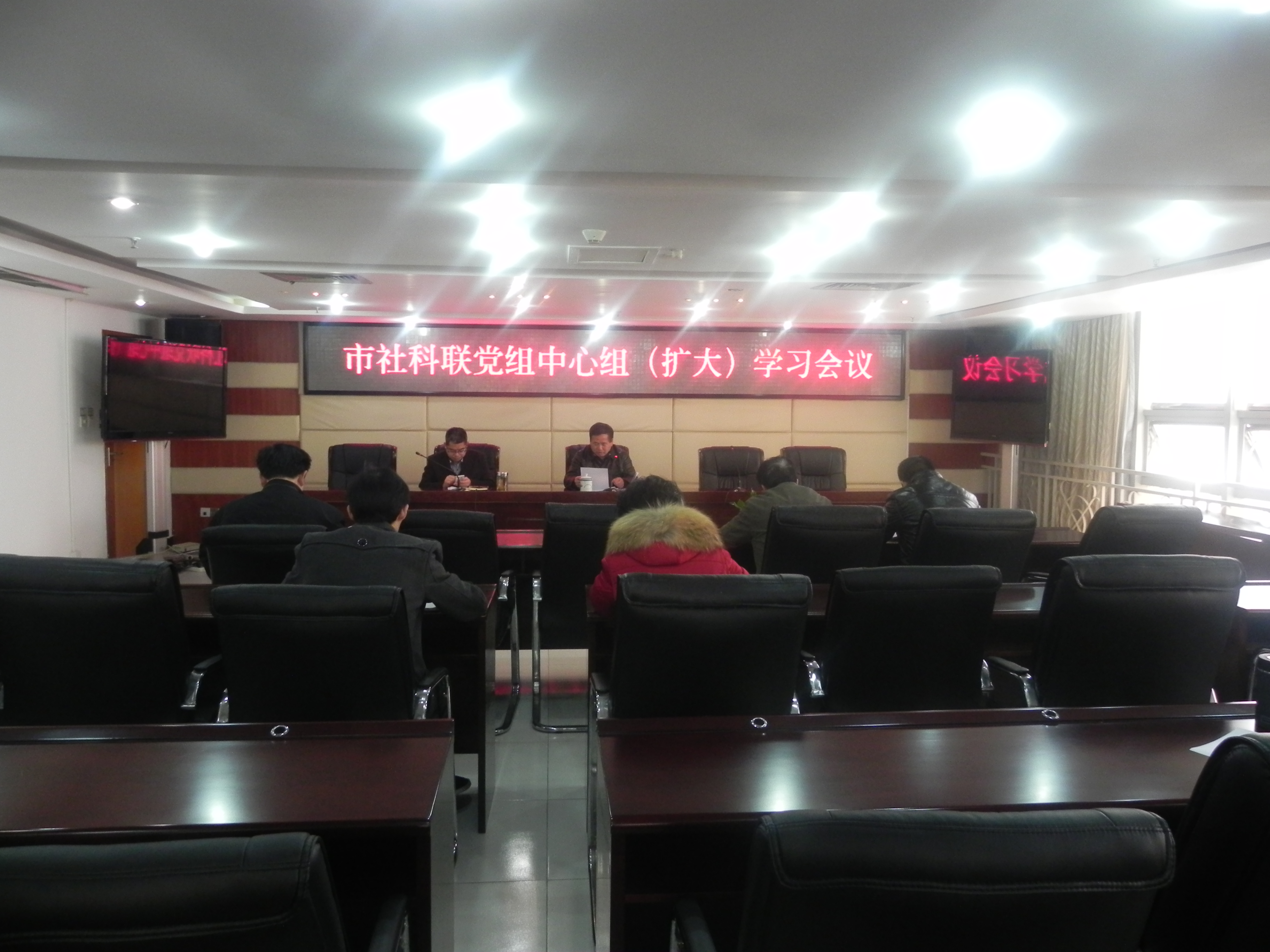 2月26日上午,市社科联党组书记、副主席杨清明,在机关会议室,主持召开市社科联党组中心组(扩大)学习会议。市社科联党组成员、副主席阳奎兴,副巡视员傅剑秋,以及机关处级以上党员干部参加学习会议。