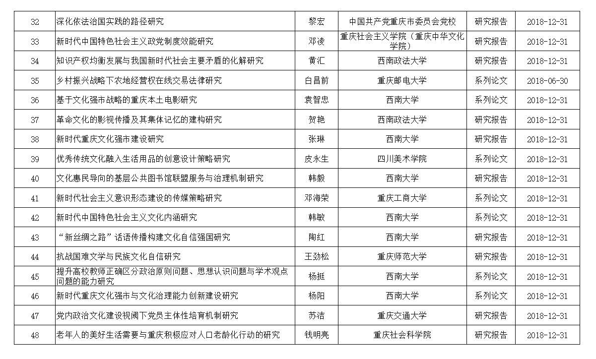 经专家评审,市社科联审定,现将2017年重庆市社科规划“研究阐释党的十九大精神”项目立项名单予以公布。