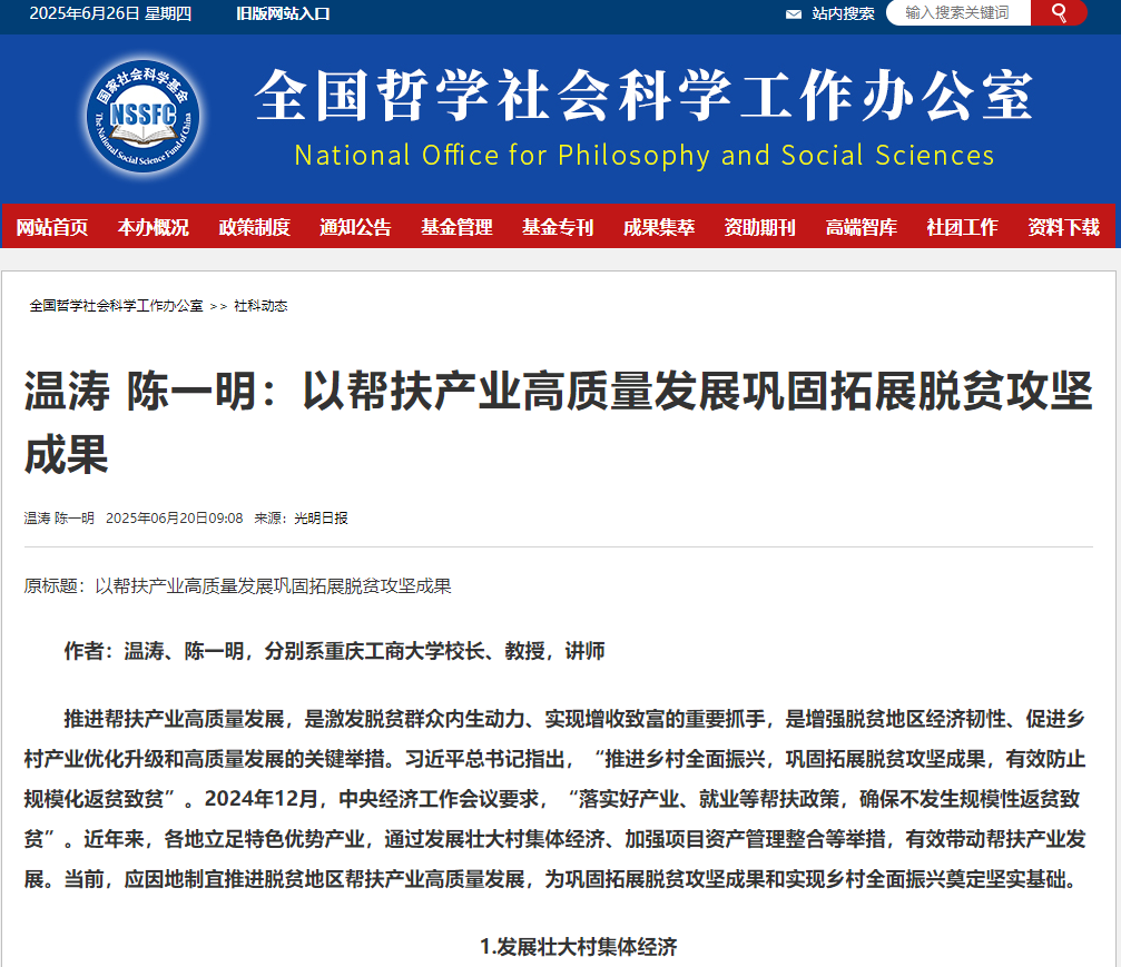 (重庆工商大学供稿,原文发表于《光明日报》2025年06月20日 06版,获全国哲学社会科学办公室官网全文转载推介)