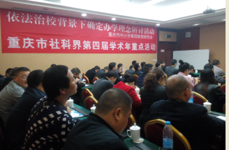 11月11日至12日,重庆市中小学素质教育研究会举办——“依法治校背景下 确定办学理念”的研讨活动,来自川、渝两地的42名中小学校长参加活动。本次活动为重庆市社会科学界第四届学术年重点活动,得到市社科联的大力支持。