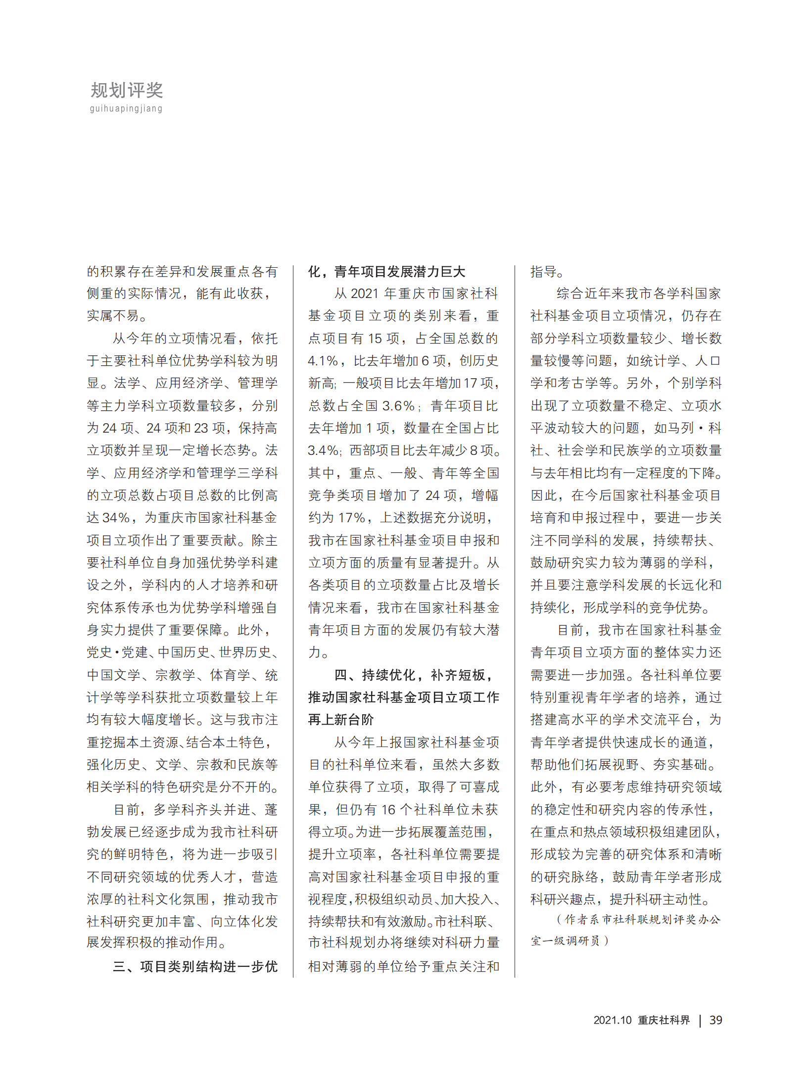 2021 年度重庆市国家社科基金项目立项情况分析报告